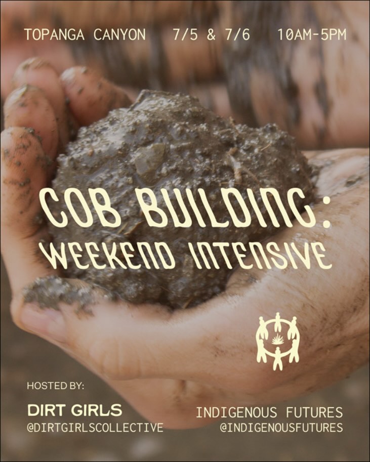 Join us for a 2-day Cob Building intensive in Topanga Canyon in partnership with Chris of @indigenousfutures. Together, we will learn the foundations of building with cob as a sustainable alternative to conventional construction techniques.