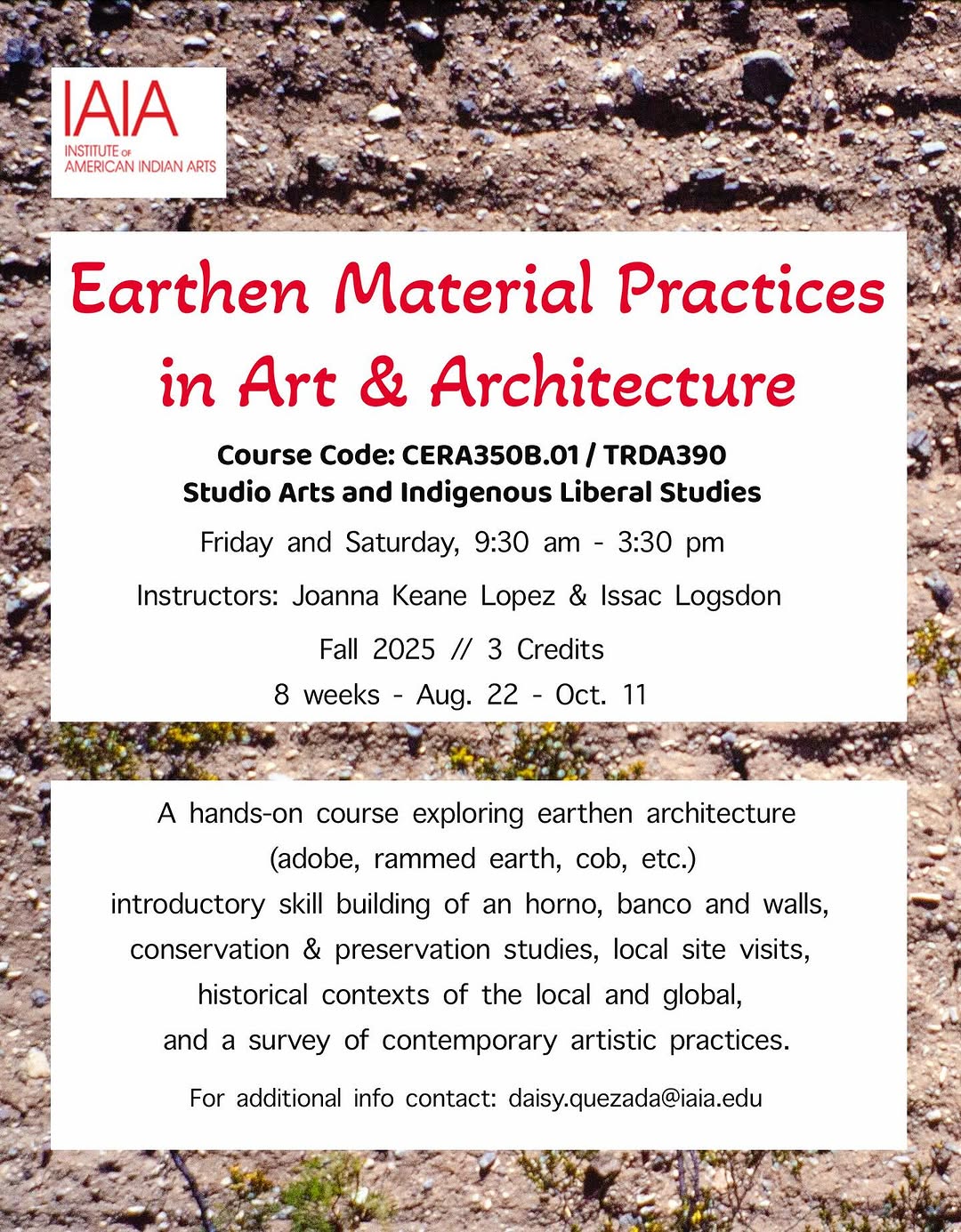 - Registration: Contact daisy.quezada@iaia.edu